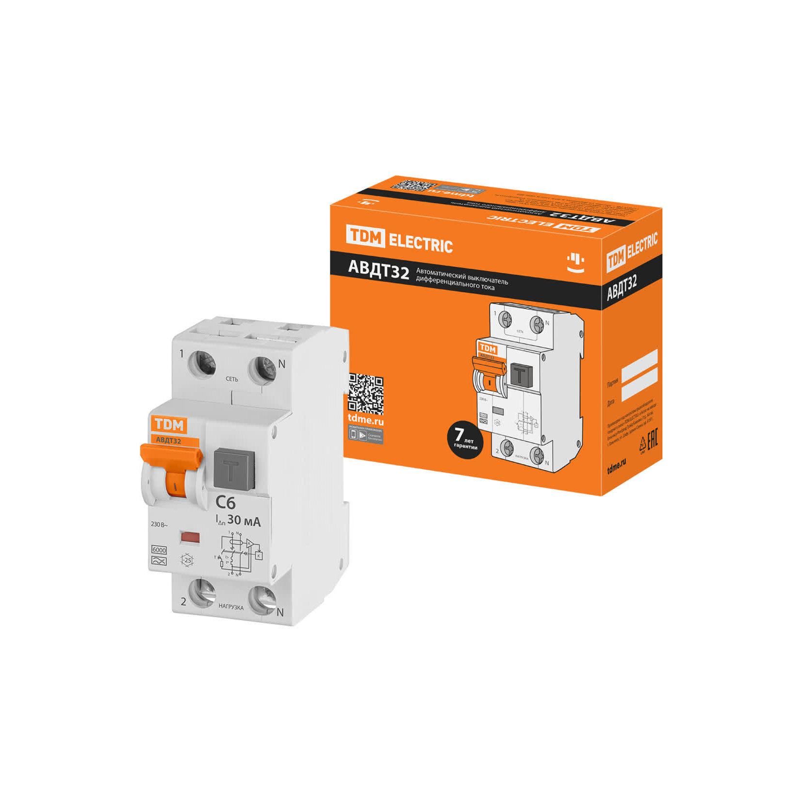 Автоматический Выключатель Дифференциального тока - АВДТ 32 С6 30мА, TDM SQ0202-0204 (1 шт.) интересное: