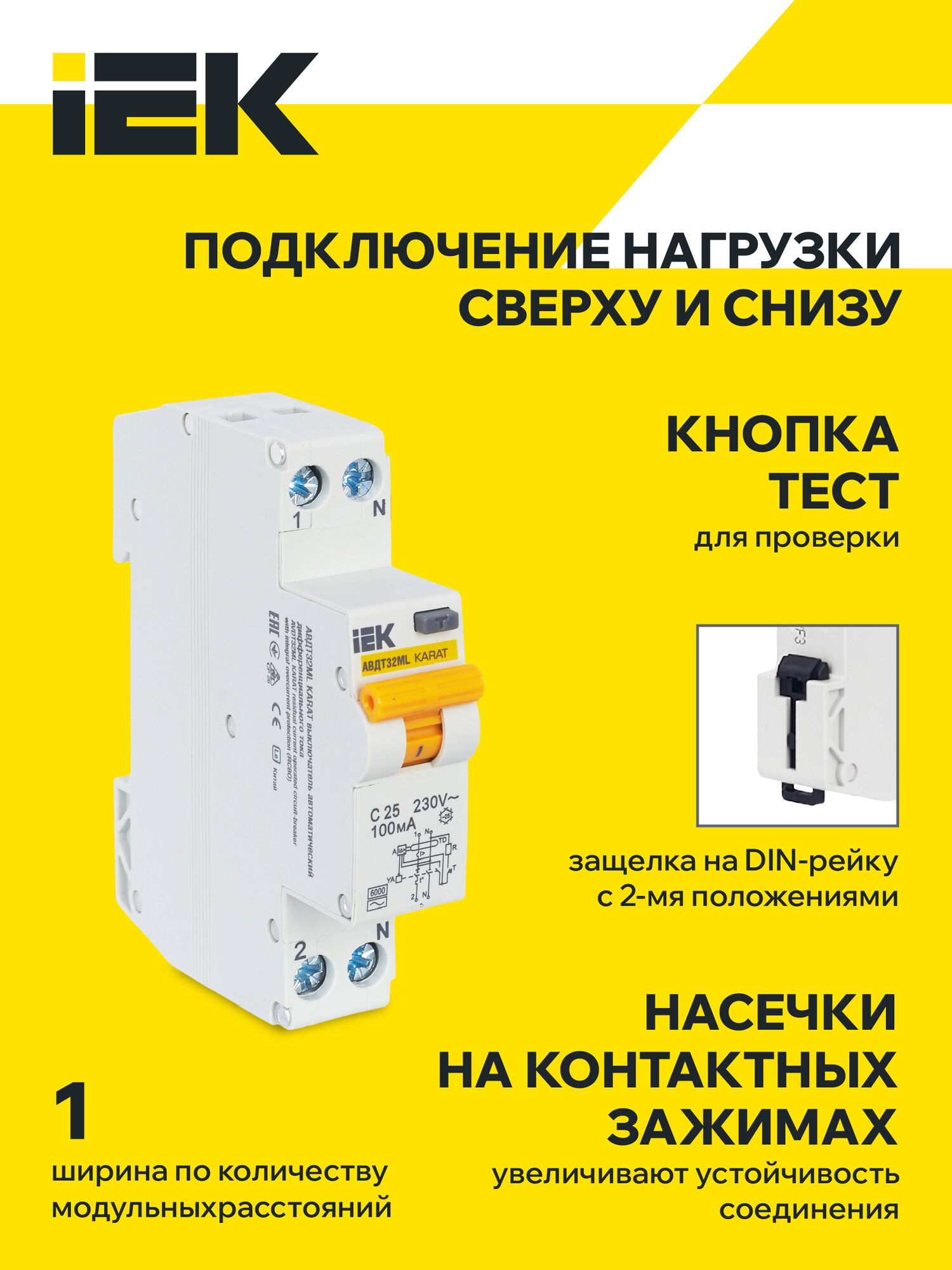 Выключатель автоматический дифференциального тока АВДТ32МL C25 100мА KARAT IEK интересное:
