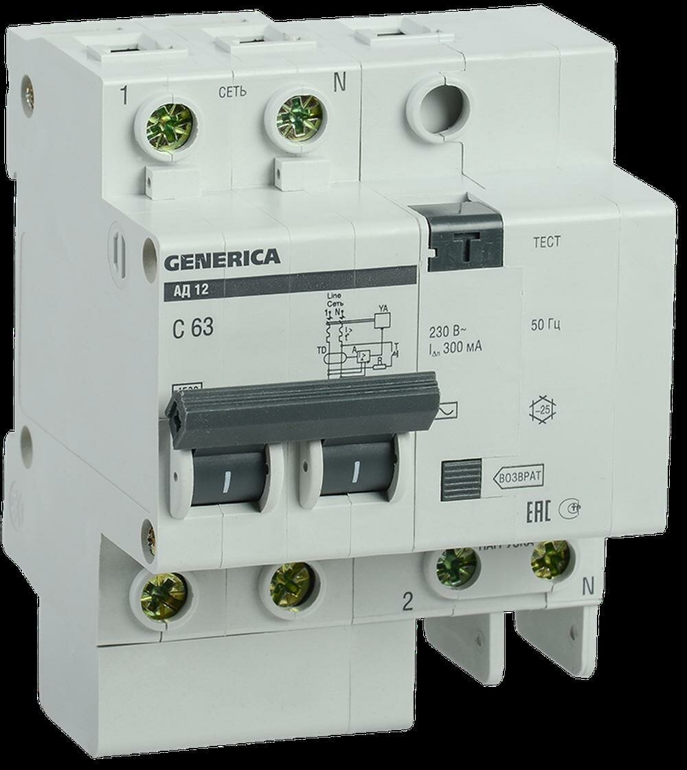 Выключатель автоматический дифференциальный АД12 2Р 50А 300мА GENERICA (MAD15-2-050-C-300) интересное: