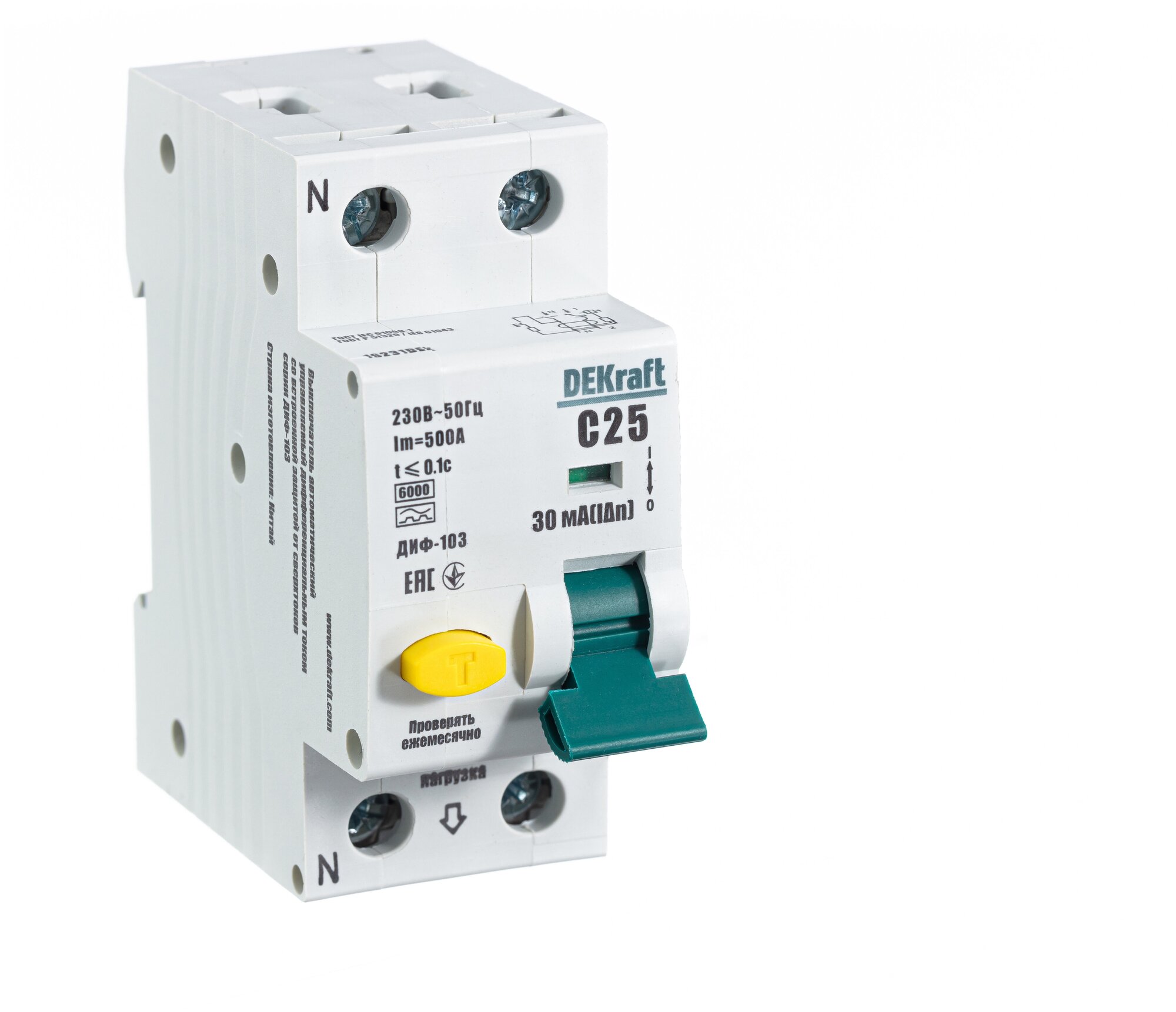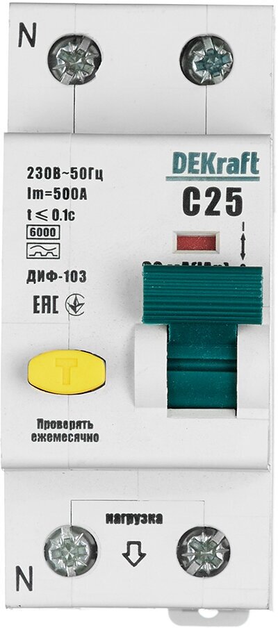 Dekraft Дифференциальный автомат (АВДТ) 1Р+N 25А 30мА тип A х-ка С ДИФ-103 6кА интересное: