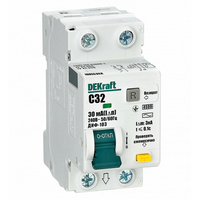 Выключатель автоматический дифференциальный DEKraft (АВДТ) 1п+N 32А 30мА тип AC С 4.5кА интересное:
