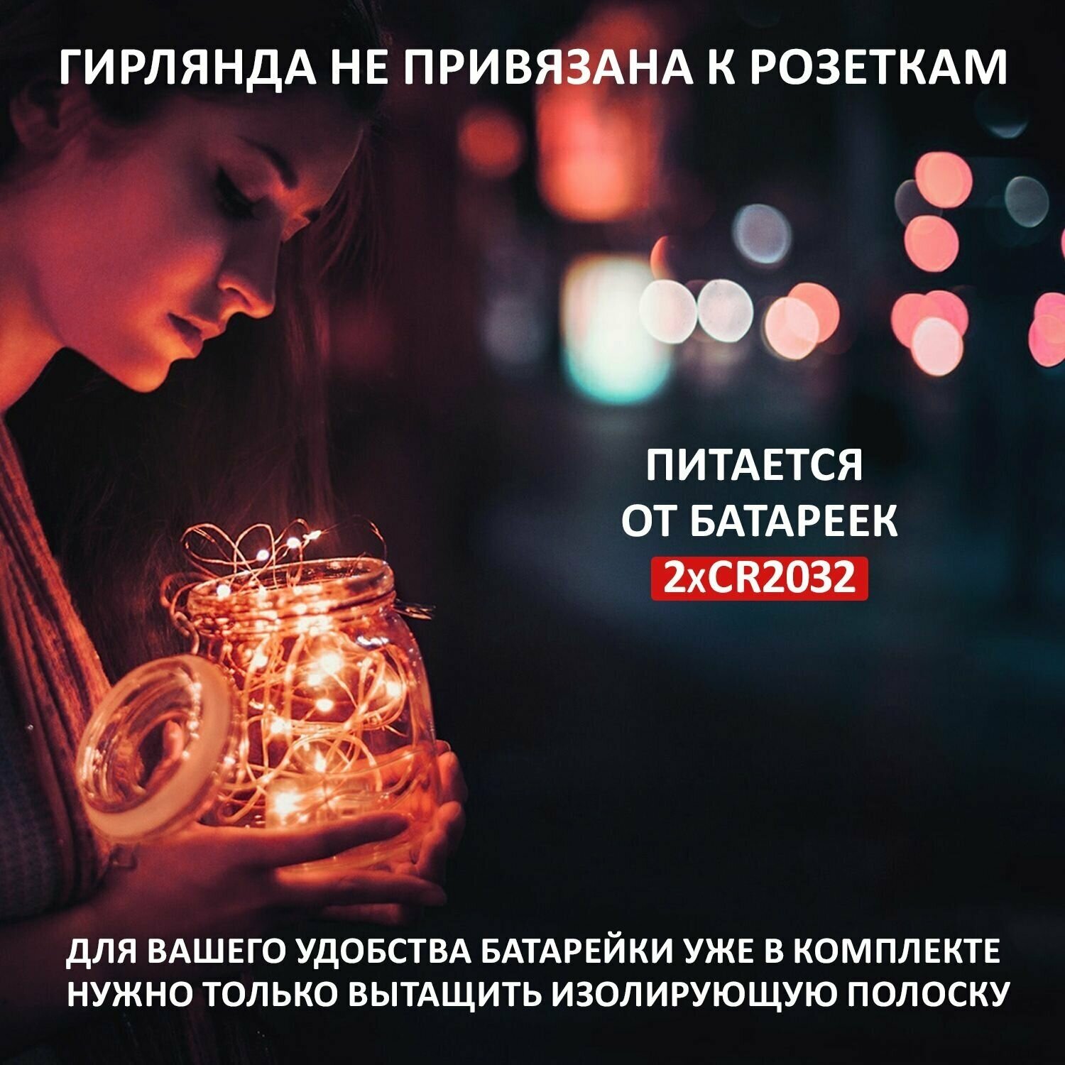 | Отзыв: | Можно украсить маленькую елочку, цветы, полку. Тонкая, легкая, можно согнуть. Удобно, что не нужна розетка. Батарейки в комплекте. |