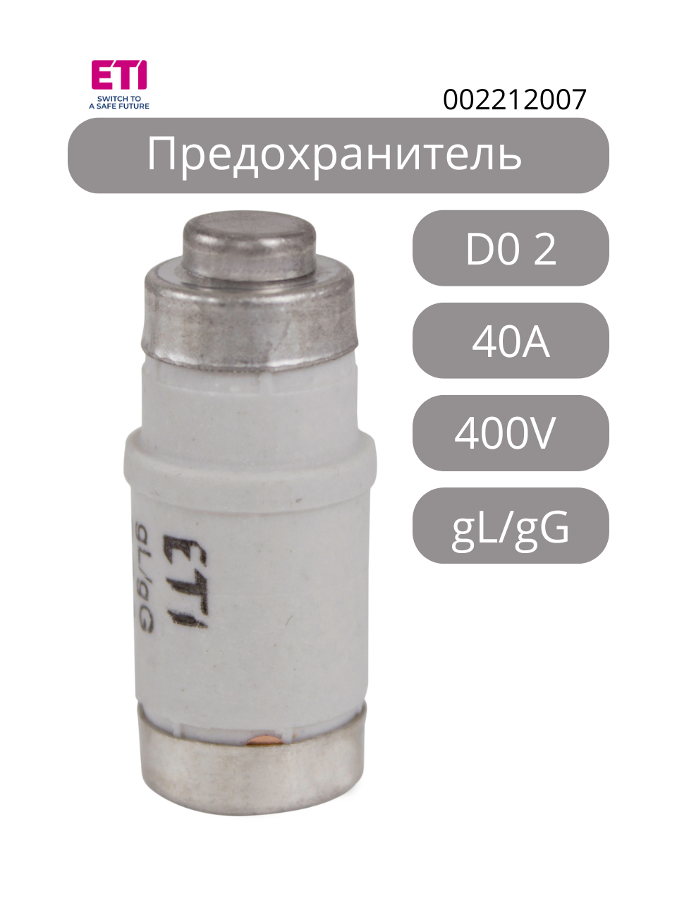 Купить 10 шт, Предохранитель D0 2 gL/gG 40A 400V (E18), ETI 002212007