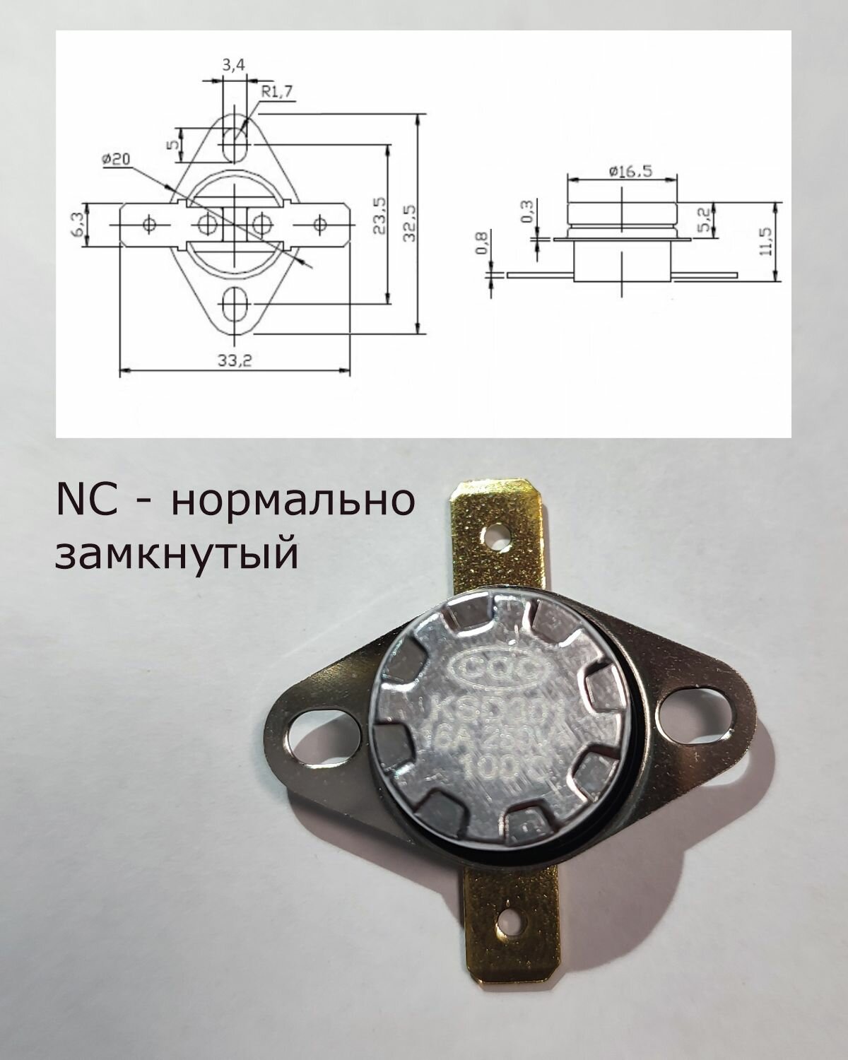 1шт_Термостат предохранитель KSD-301 100C 16A биметаллический (нормально замкнутый, фланец поворотный) интересное: