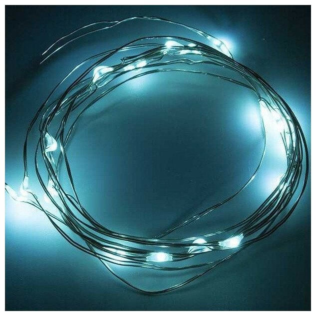 Гирлянда светодиодная Роса 2м, 20LED, бирюзовый, IP20, тонкий батарейный блок, 2хCR2032 в комплекте NEON-NIGHT