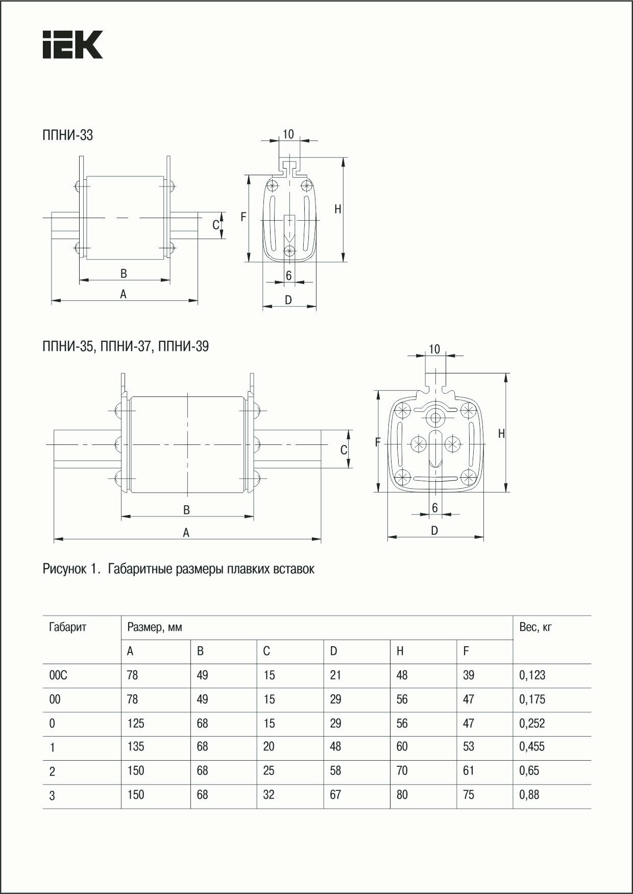 Плавкая вставка предохранителя ППНИ-33 габарит 00С 100А IEK (3шт) интересное:
