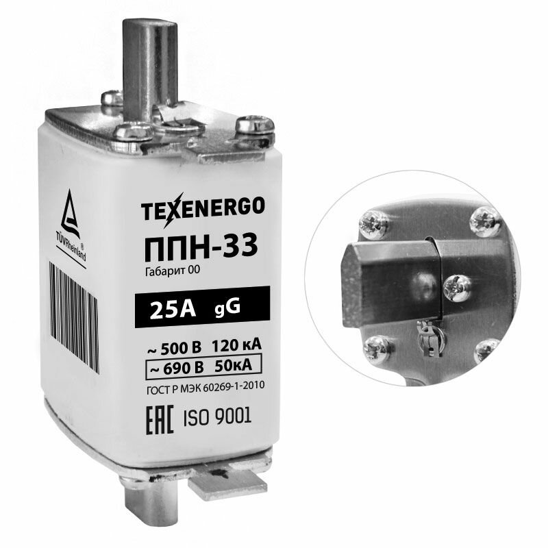 Купить Плавкая вставка ППН33 25А габарит 00 PP10-025 предохранитель Texenergo