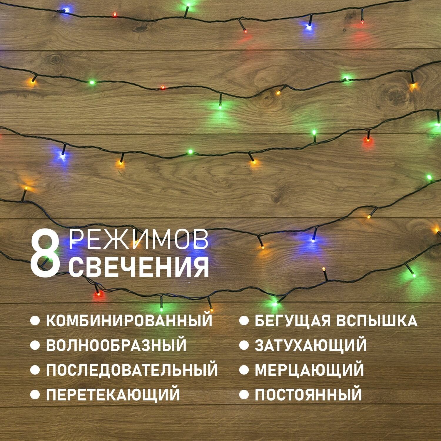 Купить Светодиодная гирлянда "Твинкл-Лайт" 10 м с 8 режимами свечения, 80 LED, цвет свечения: Мультиколор