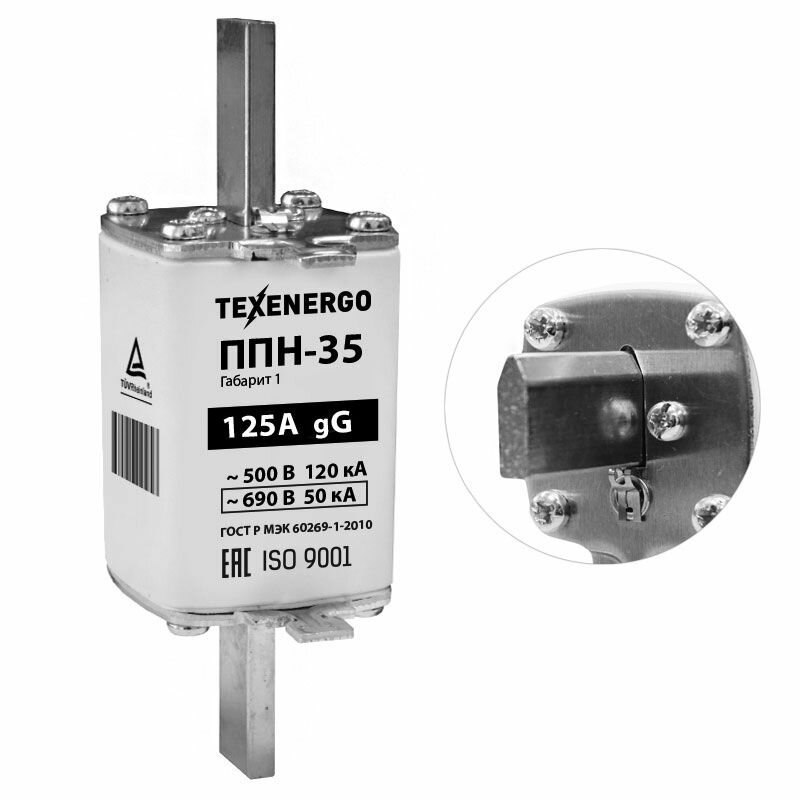Купить Плавкая вставка ППН35 125А габарит 1 PP20-125 предохранитель Texenergo