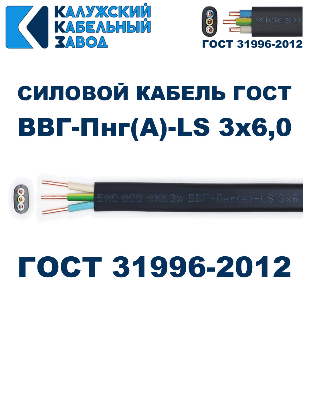 Кабель силовой ВВГ-Пнг(А)-LS 3х6,0 ГОСТ. 1 метр. Кaлyжcкий кабельный зaвoд