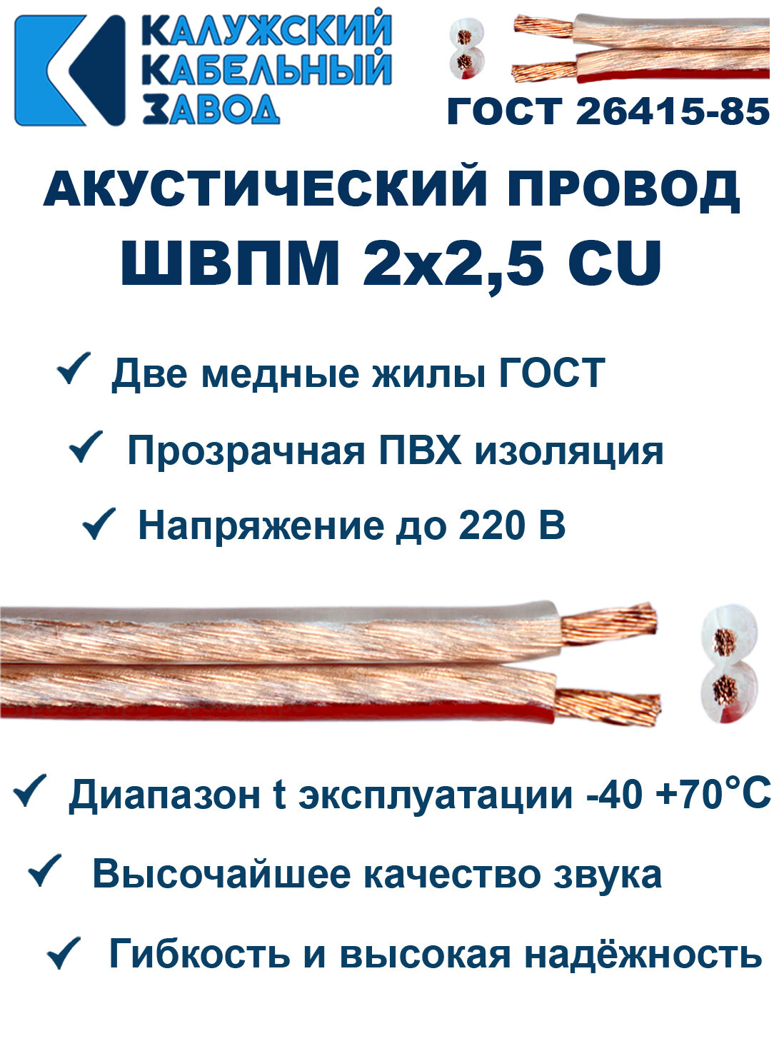 Акустический провод швпм 2х2,5, 100 метров, ГОСТ, Калужский кабельный завод.