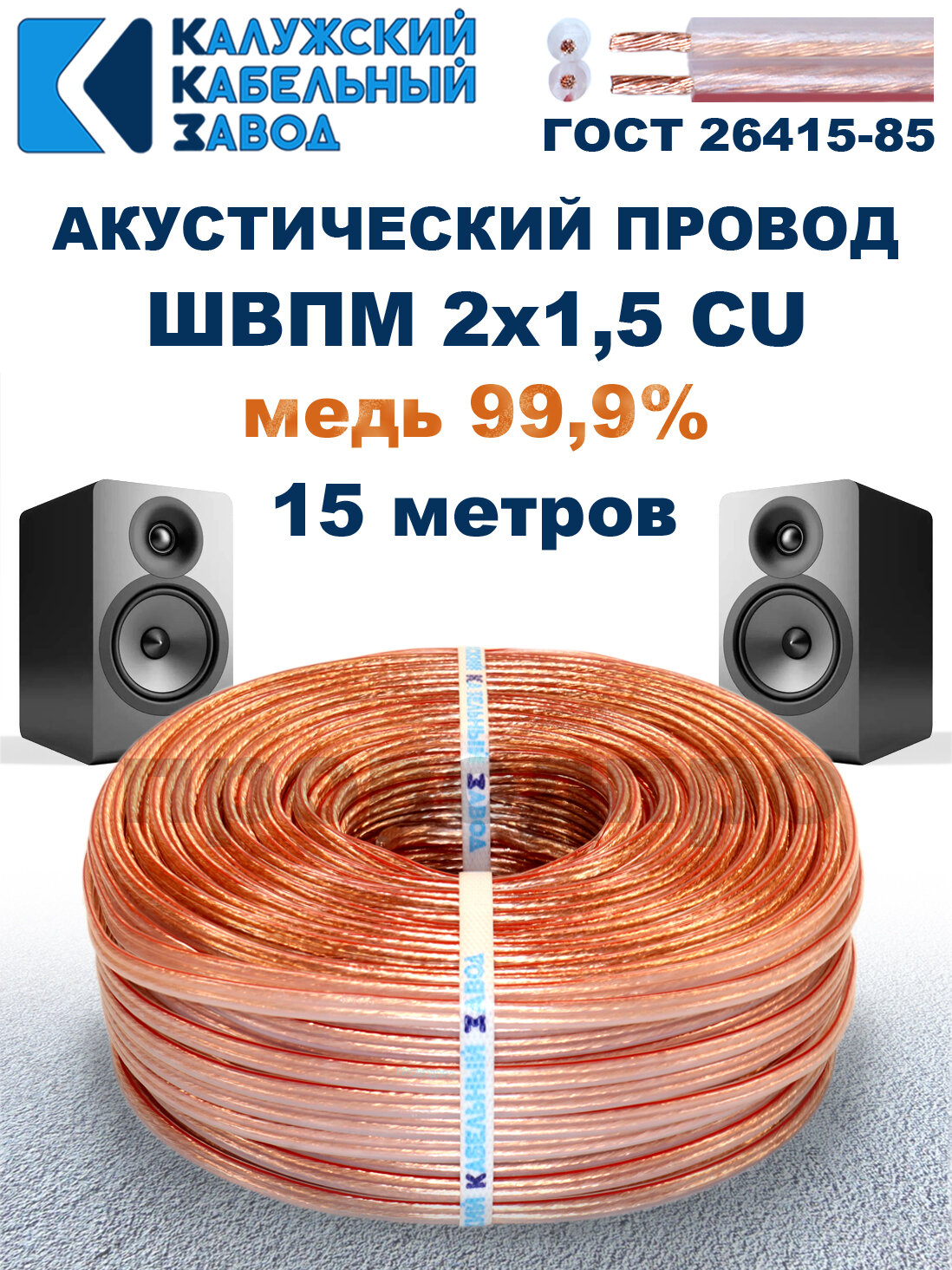Купить Акустический провод швпм 2х1,5, 15 метров, ГОСТ, Калужский кабельный завод.