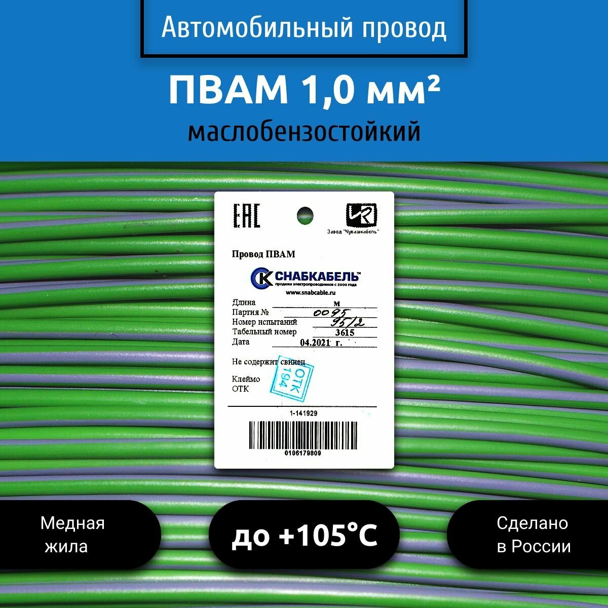 Провод автомобильный пвам (ПГВА) 1,0 (1х1,0) зелено/белый 5 м