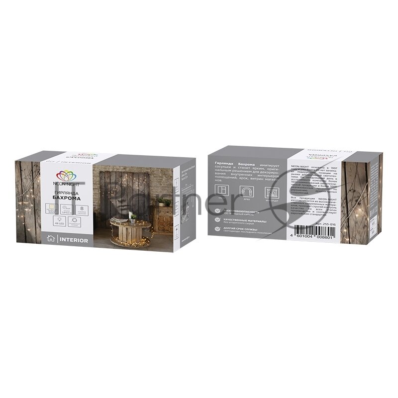 Гирлянда NEON-NIGHT 255-019, 1 шт. в наборе, 1.8 х 0.5 х 0.5 м, 0.5 х 0.5 м, 48 ламп, прозрачный