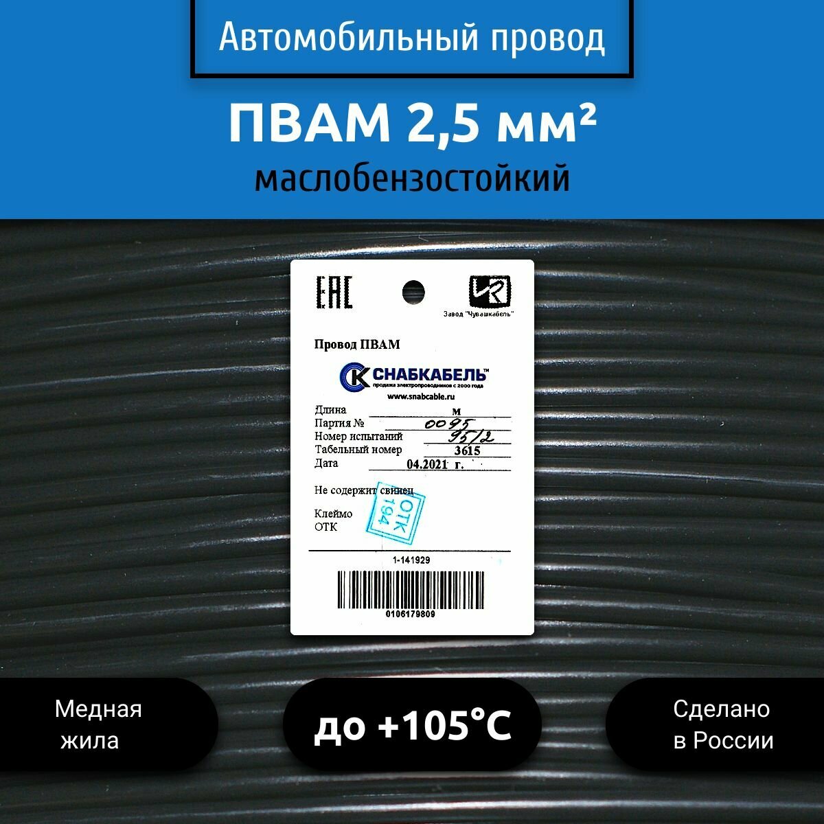 Провод автомобильный пвам (ПГВА) 2,5 (1х2,5) черный 1 м