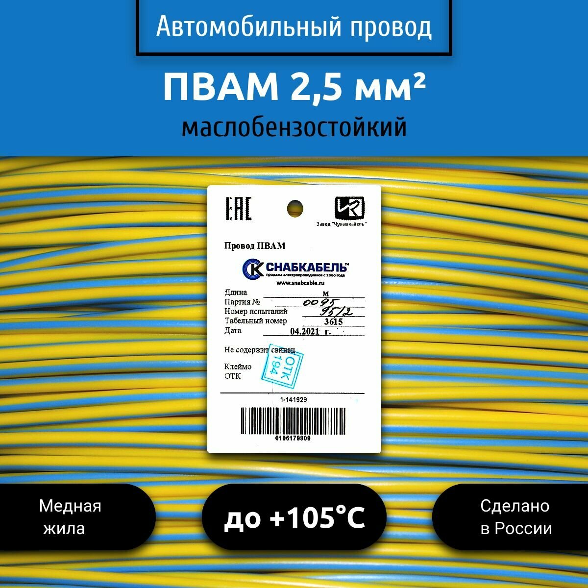 Провод автомобильный пвам (ПГВА) 2,5 (1х2,5) желто/голубой 5 м