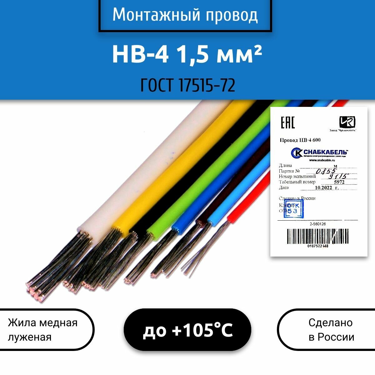 Электрический провод НВ 1,50мм2 4х600В 100 м белый на катушке
