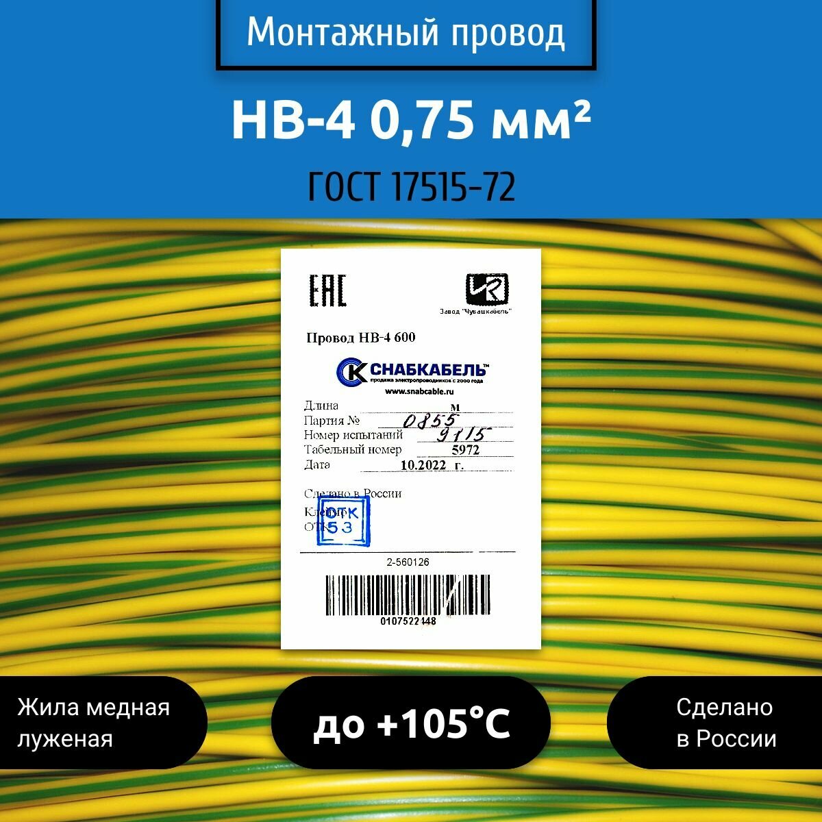 Электрический провод НВ 0,75мм2 4х600В 100м желто/зеленый