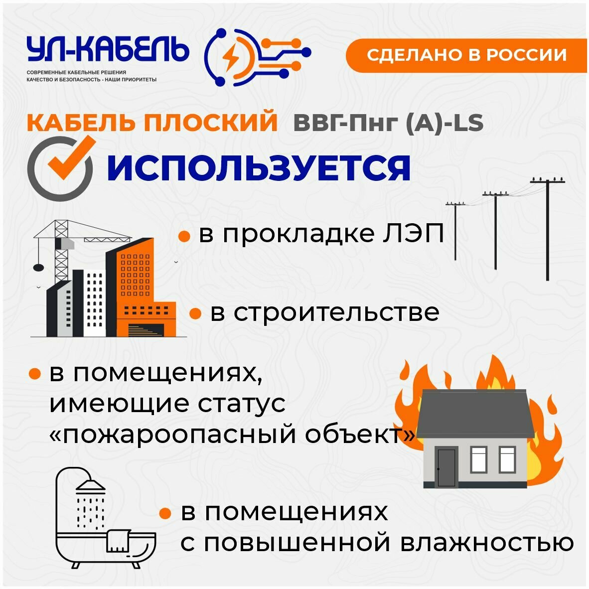 Кабель плоский ВВГ-Пнг(А)-LS 3 x 2.5 мм , 10 м ГОСТ (УЛ-КАБЕЛЬ)