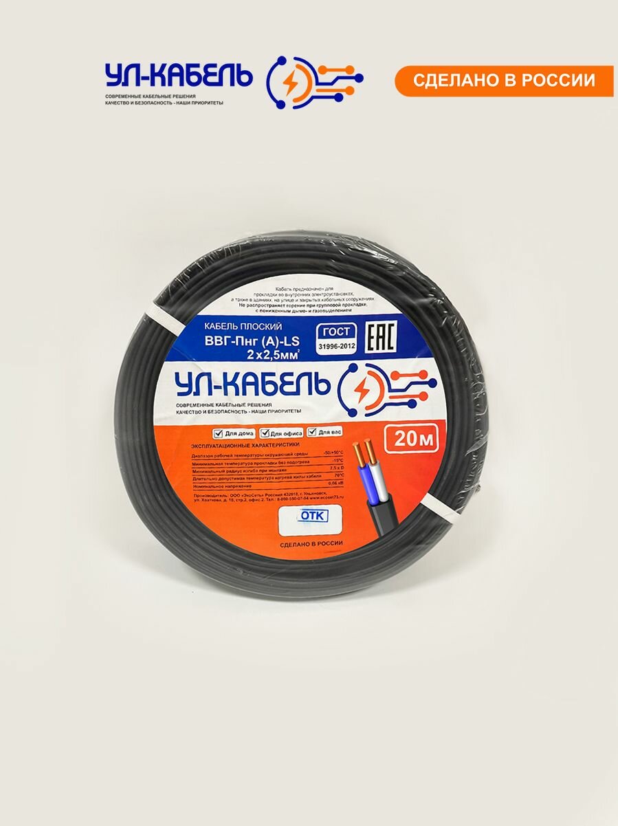 Купить Кабель плоский ВВГ-Пнг(А)-LS 2 x 2.5 мм , 20 м ГОСТ (УЛ-КАБЕЛЬ)