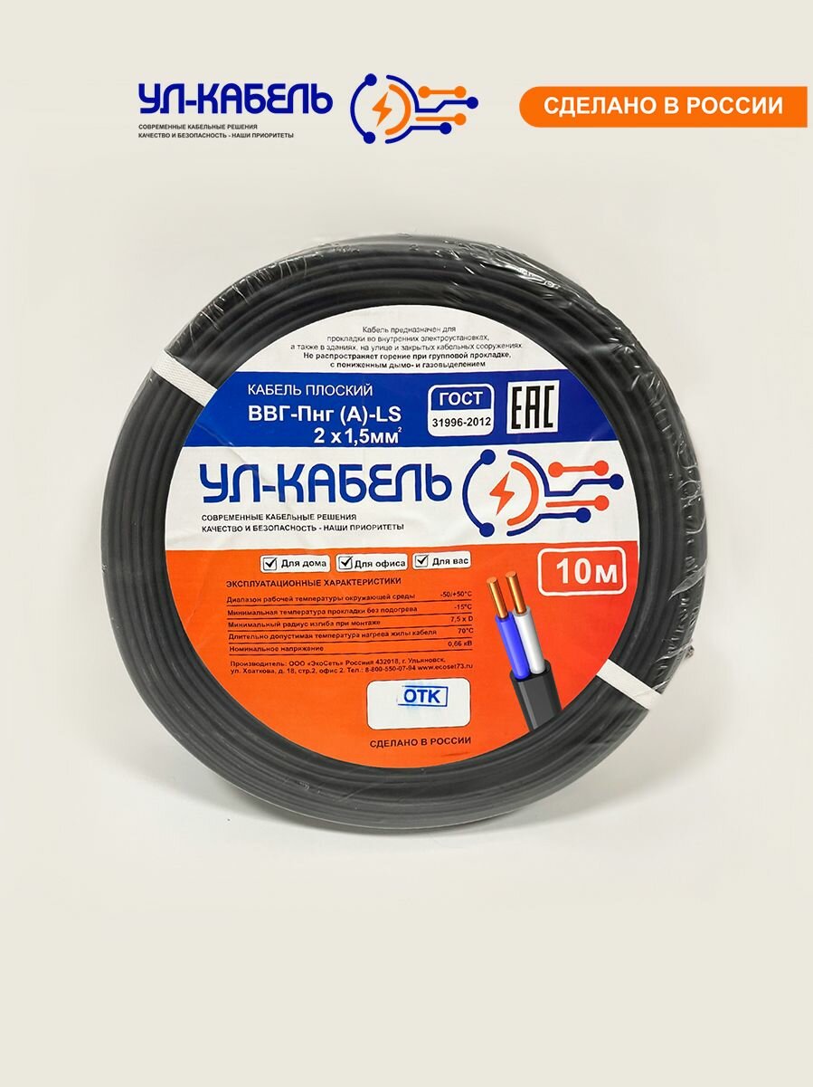 Купить Кабель плоский ВВГ-Пнг(А)-LS 2 x 1.5 мм , 10 м ГОСТ (УЛ-КАБЕЛЬ)