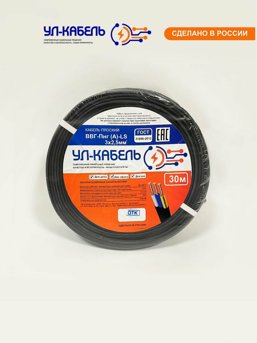 Кабель плоский ВВГ-Пнг(А)-LS 2 x 2.5 мм , 30 м ГОСТ (УЛ-КАБЕЛЬ)