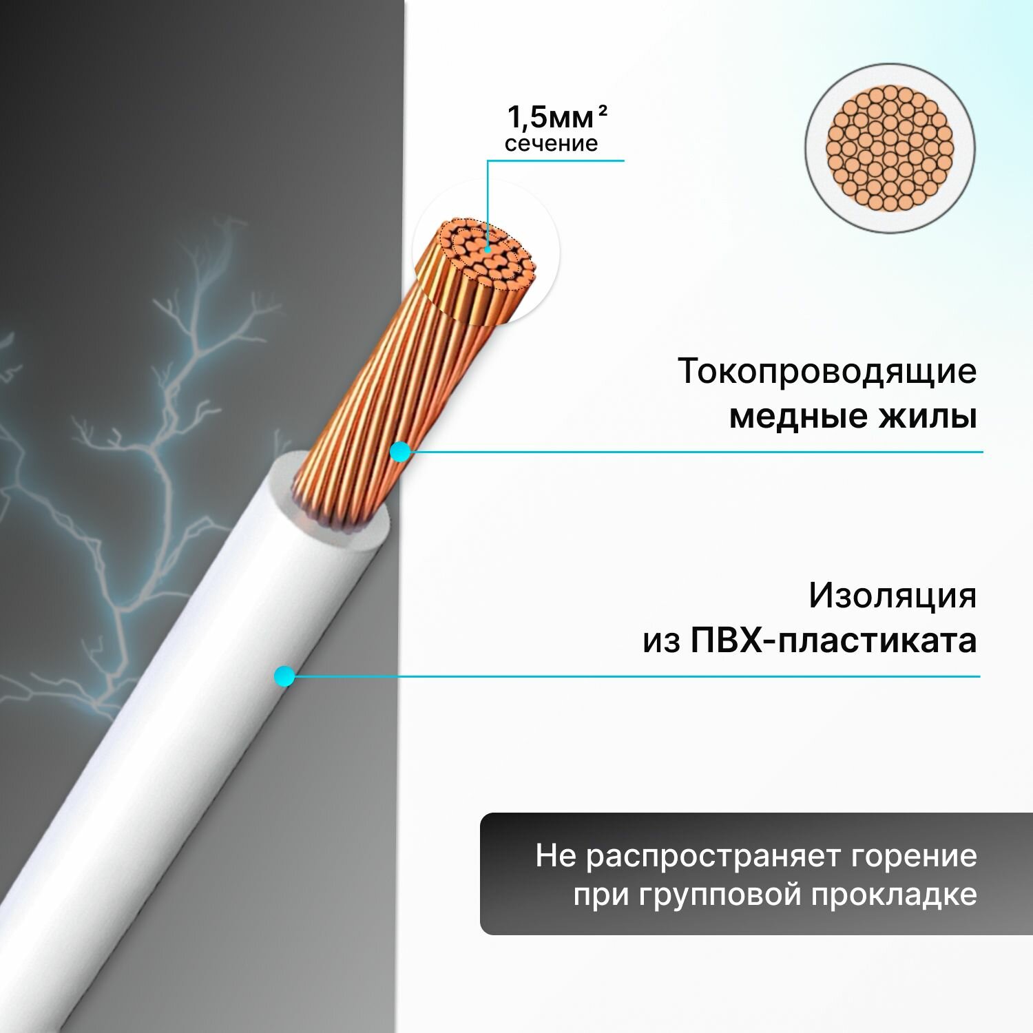 Провод электрический рэмкaбель ПуГВ 1х1.5 белый ГОСТ круглый 10 м