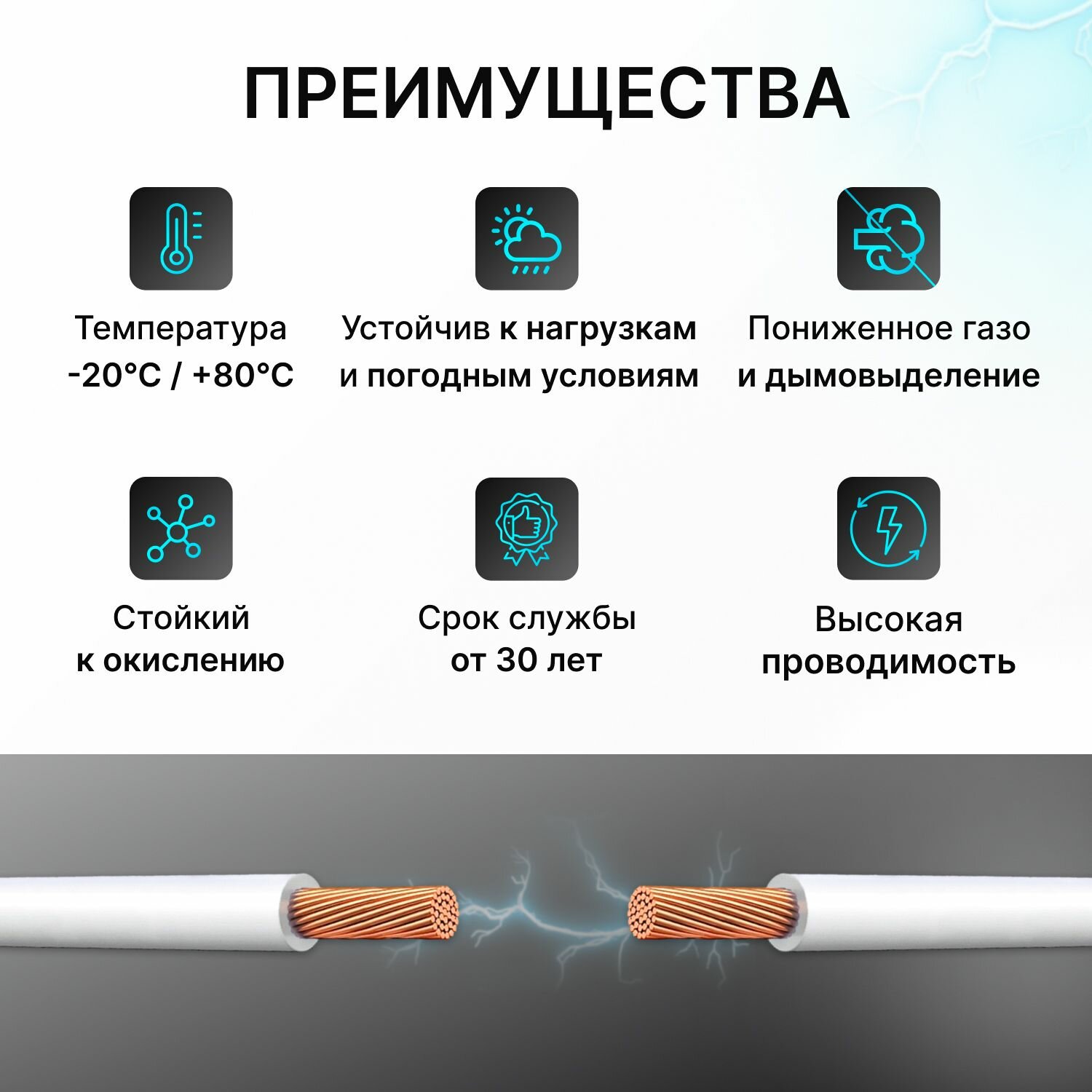 Провод электрический рэмкaбель ПуГВ 1х6 белый ГОСТ круглый 30 м