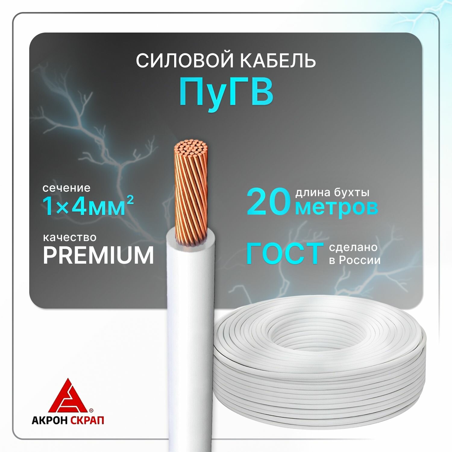 Купить Провод электрический рэмкaбель ПуГВ 1х4 белый ГОСТ круглый 20 м