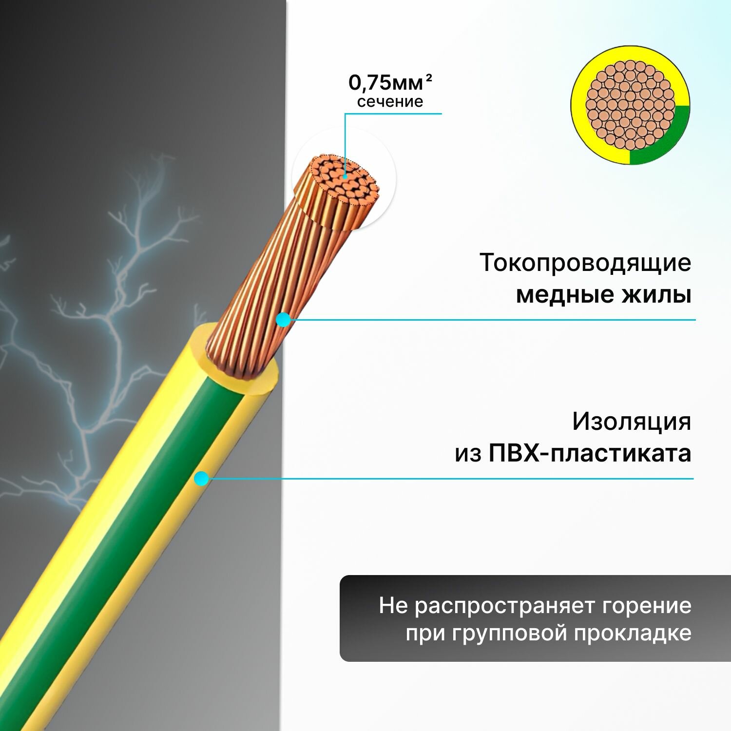 Купить Провод электрический рэмкaбель ПуГВ 1х0.75 ж/з ГОСТ круглый 40 м