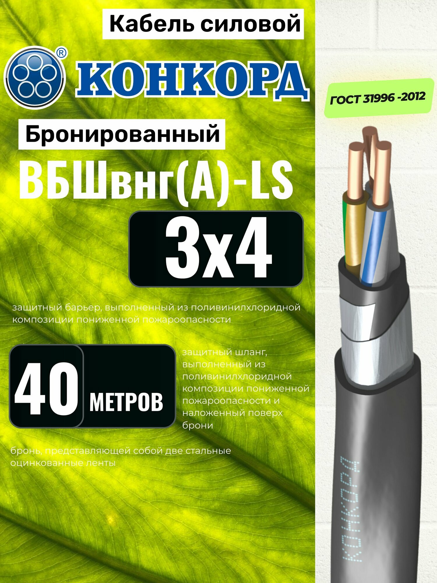 СохранитьКабель бронированный ВБШв нг(А)-LS 3х4 (N, PE) 40м Конкорд интересное: