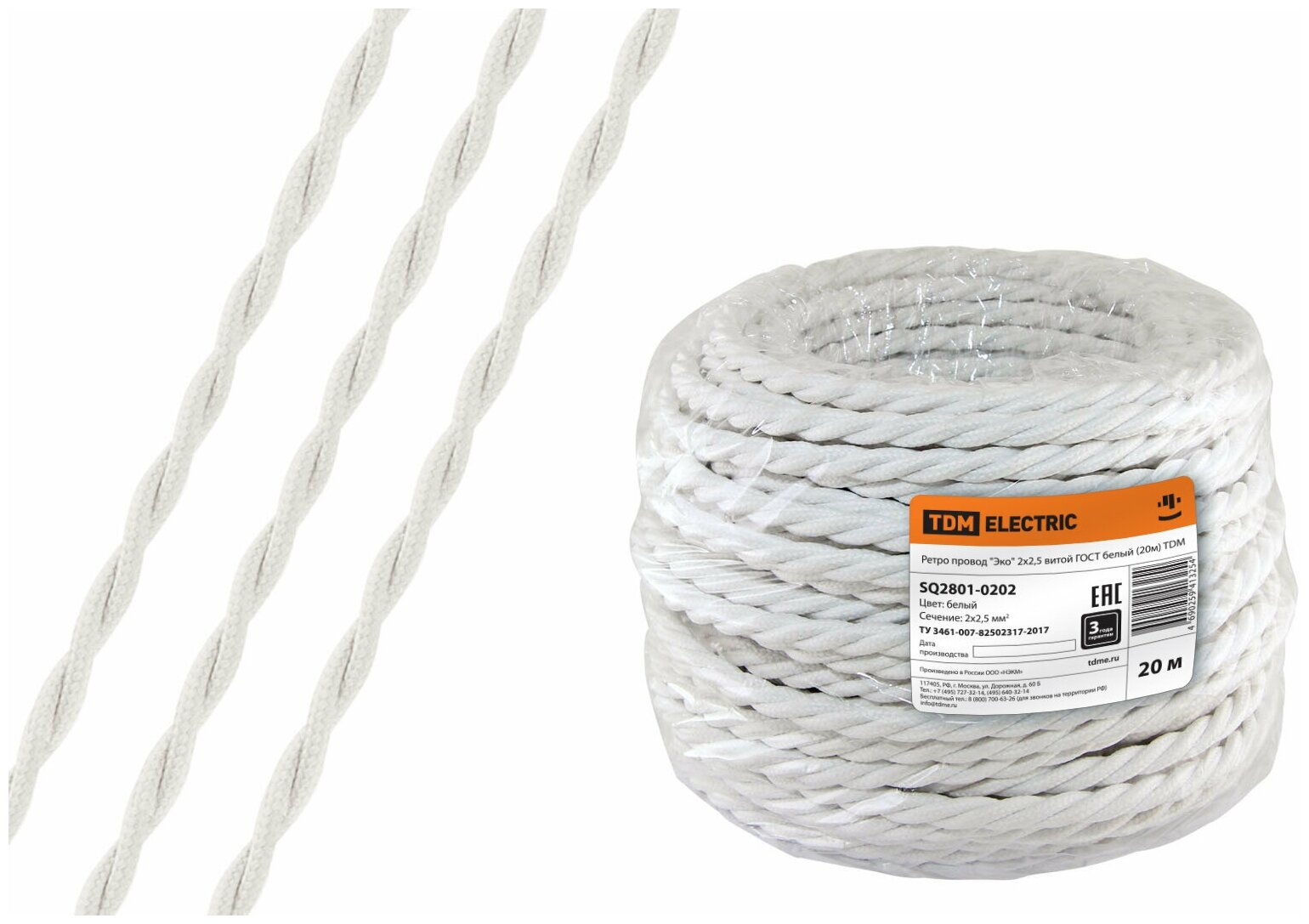 Купить TDM Ретро провод "Эко" 2x2,5 витой Гост белый 20м SQ2801-0202 .
