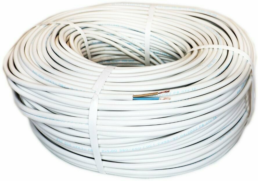 Провод соединительный ПВС 2х1 мм2, белый, медь, ГОСТ, 500 метров
