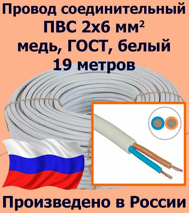 СохранитьПровод соединительный ПВС 2х6 мм2, белый, медь, ГОСТ, 19 метров интересное: