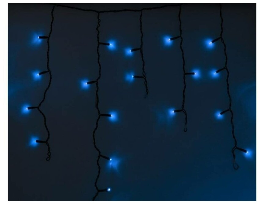 Гирлянда Айсикл (бахрома) светодиодный, 4,8 х 0,6 м, черный провод, 230 В, диоды синие, 176 LED Ne .