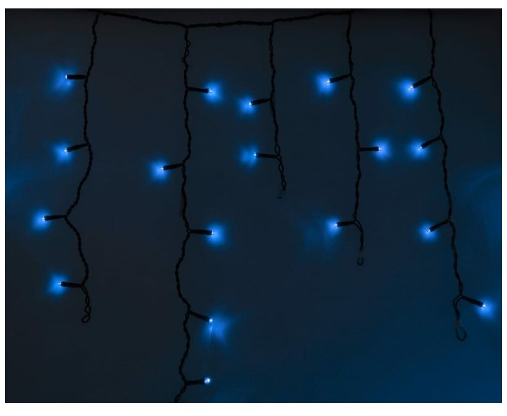 Гирлянда Айсикл (бахрома) светодиодный, 4,8 х 0,6 м, черный провод, 230 В, диоды синие, 176 LED Ne .