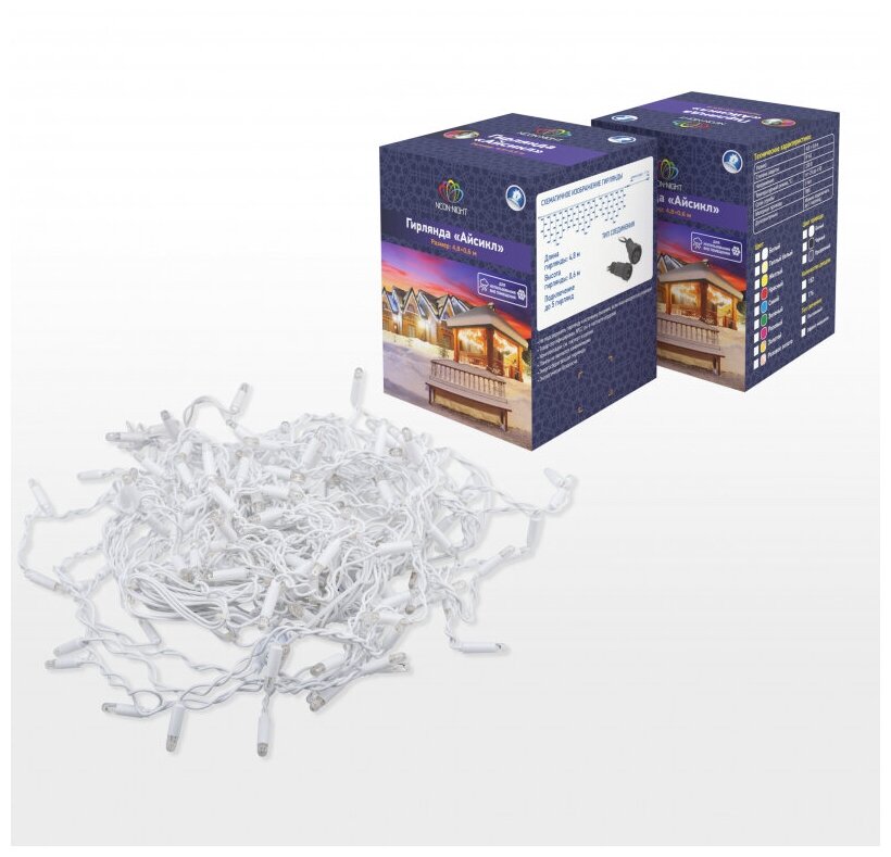 Гирлянда Neon-Night Айсикл 4.8x0.6m 176 LED White 255-137