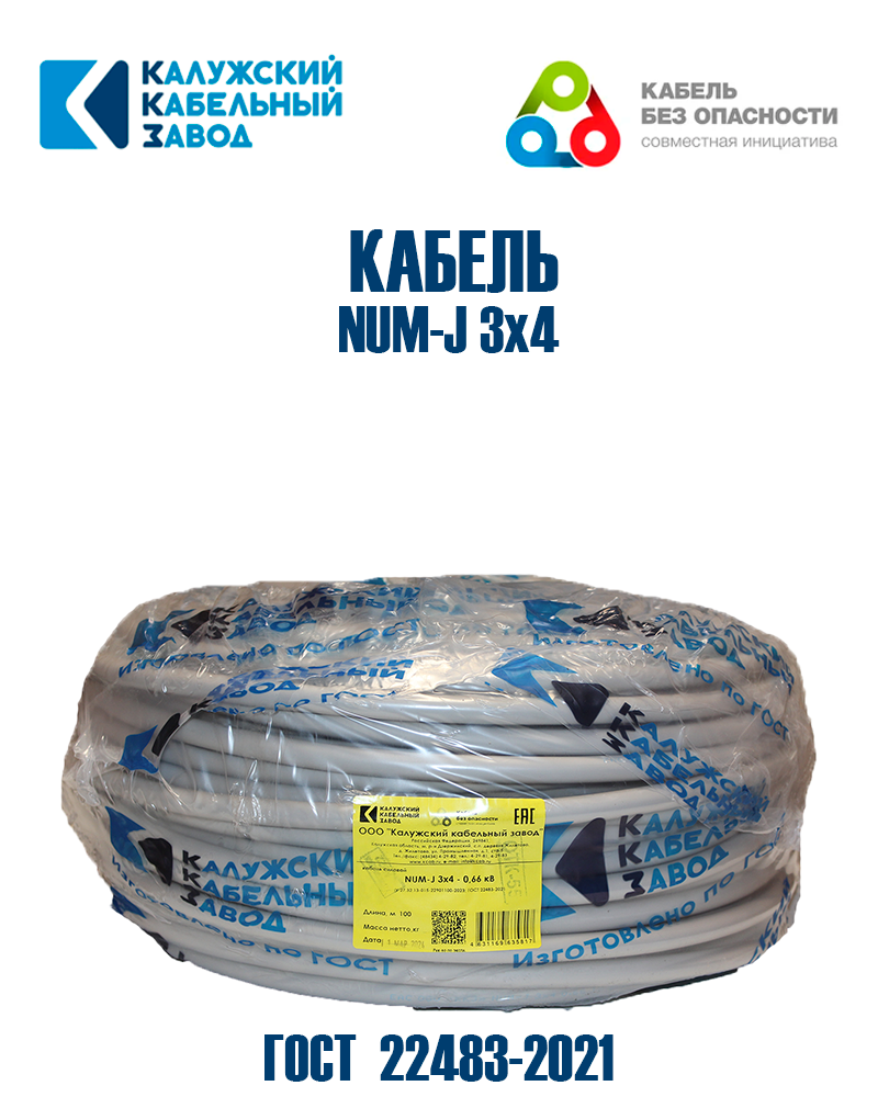 Кабель NUM-J-3x4.0 ГОСТ Калужский Кабельный Завод - 50 метров
