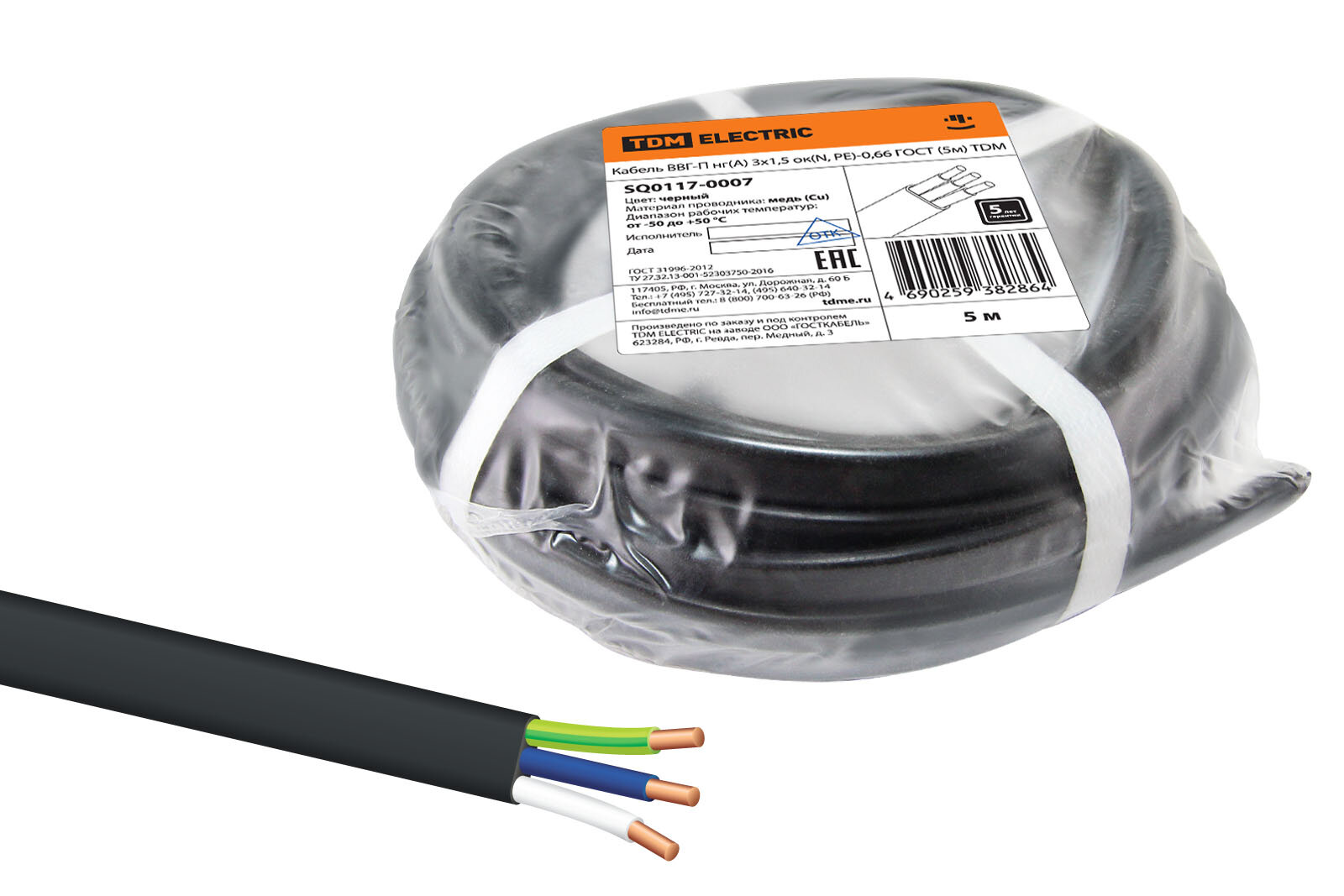 Кабель ВВГ-П нг(А) 3х1,5 ок(N, PE)-0,66 ГОСТ (5м) TDM интересное: