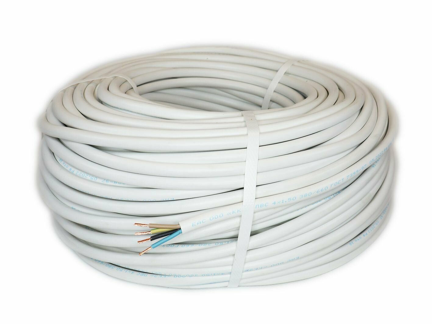 Купить Провод соединительный ПВС 4х1,5 мм2, белый, медь, ГОСТ, 45 метров