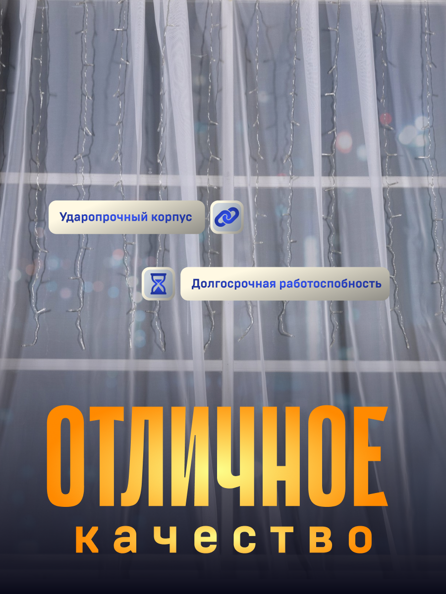 | Плюсы: | Ровный свет, как раз то, что надо для декорации окна перед Новым годом. Большое количество нитей. |