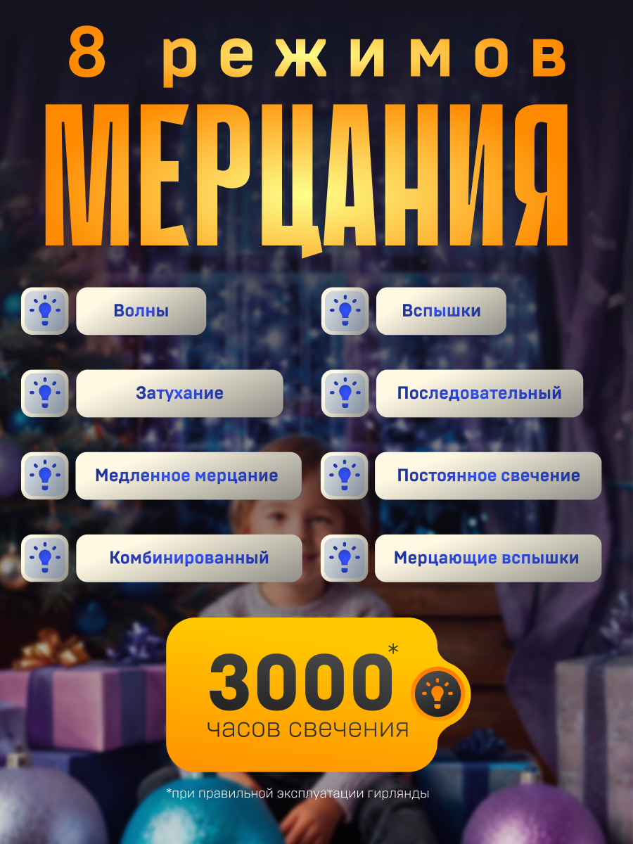 | Количество лампочек | 180 шт |