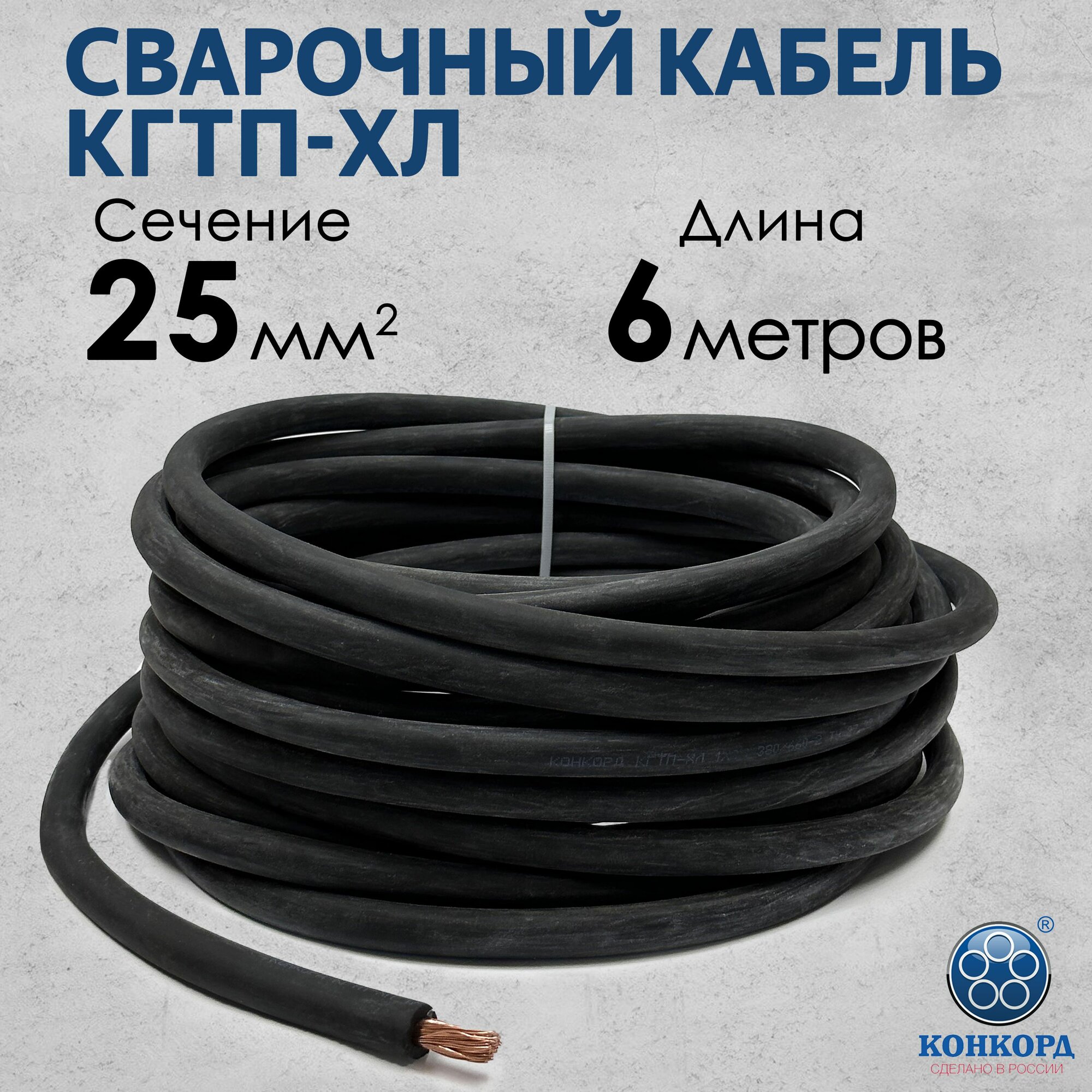 Сварочный кабель КГтп-ХЛ 25кв. мм 10 метров ГОСТ Конкорд