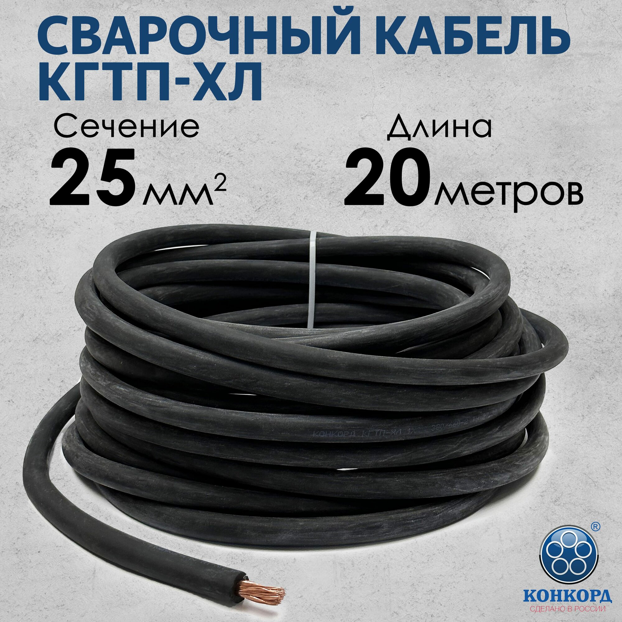 Сварочный кабель КГтп-ХЛ 25кв. мм 10 метров ГОСТ Конкорд