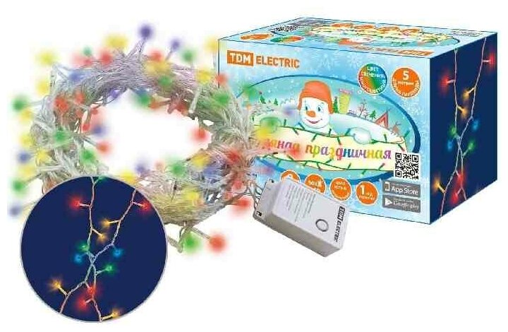 Гирлянда TDM ELECTRIC СГ50, 5 м, 50 ламп, разноцветные диоды/прозрачный провод