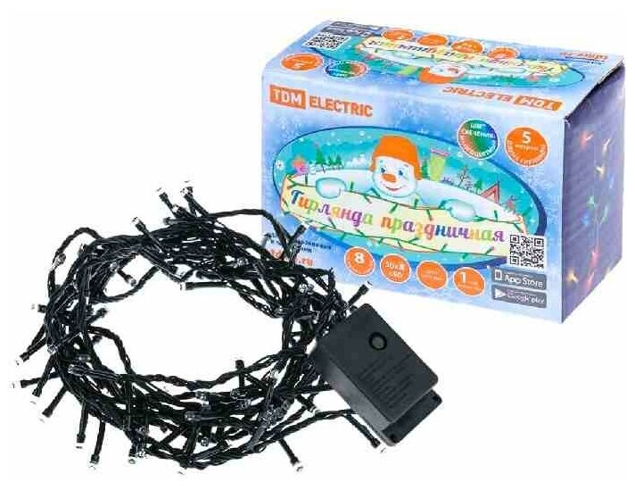 Светодиодная гирлянда TDM ELECTRIC светодиодная СГ50M5, многоцвет., 5м, 8 режимов, 250 В