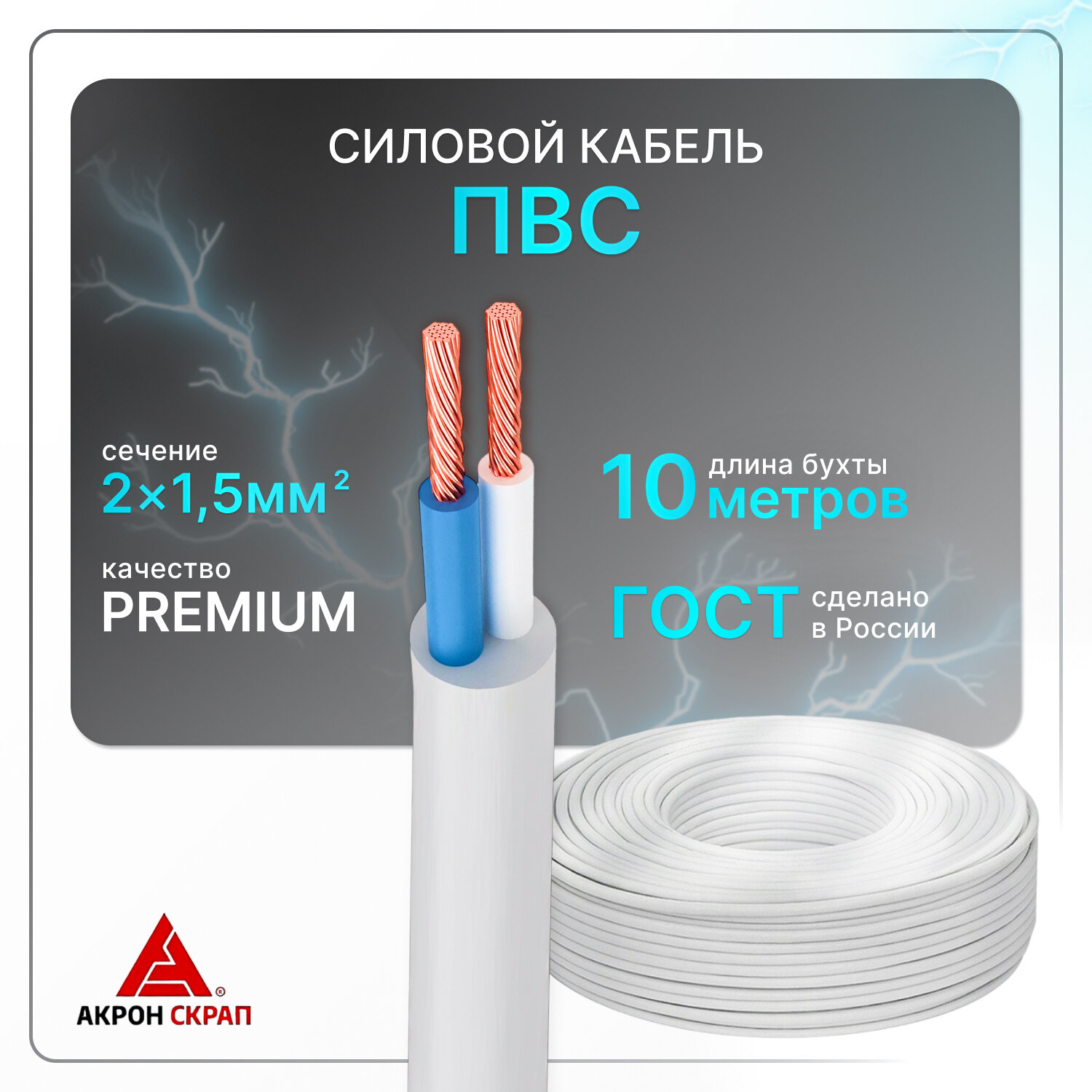 Купить Кабель электрический рэмкабель ПВС 2х1.5 белый ГОСТ круглый 10 м