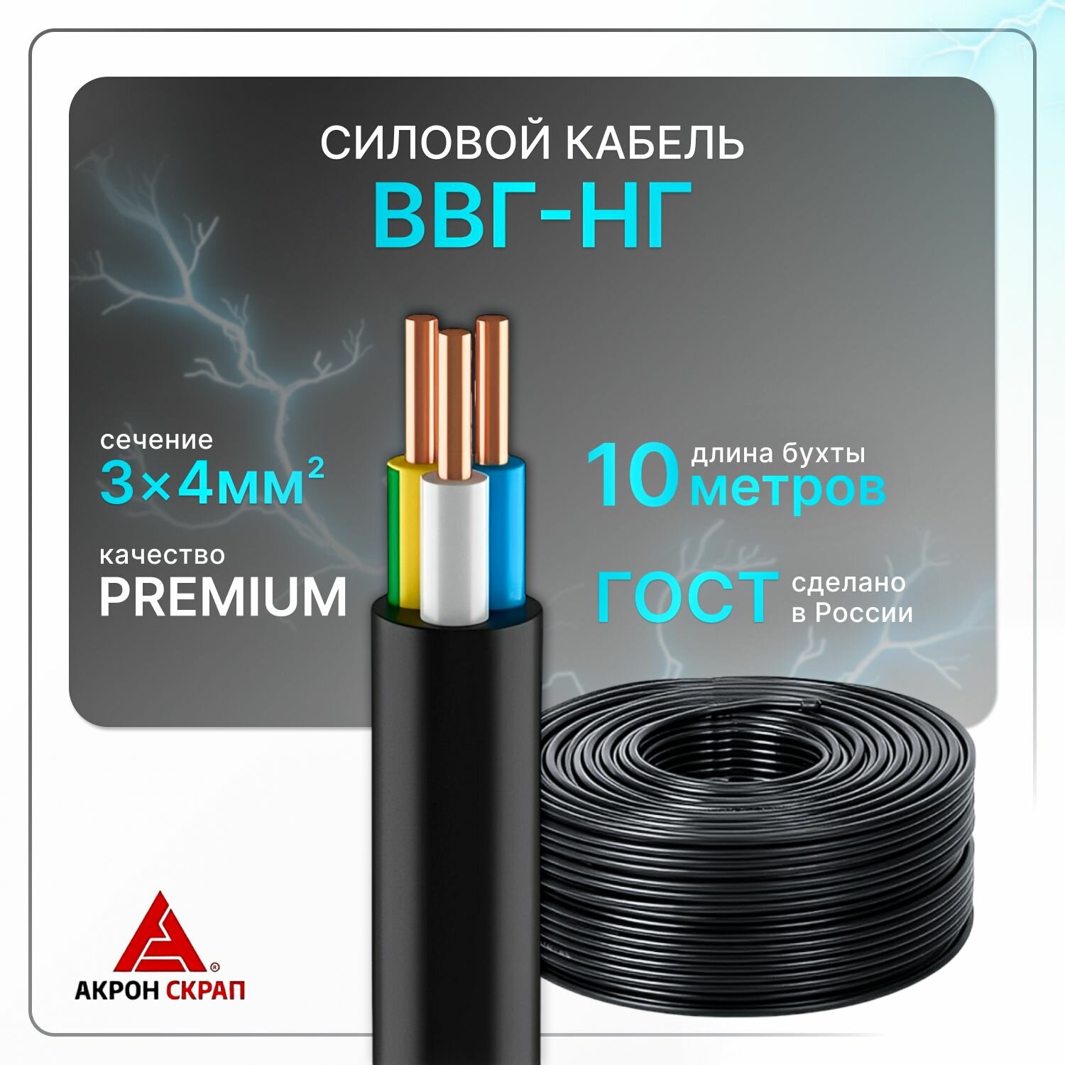 СохранитьСиловой кабель рэмкабель ВВГнг(A)-LS 3x4 ГОСТ ок круглый 10 м интересное: