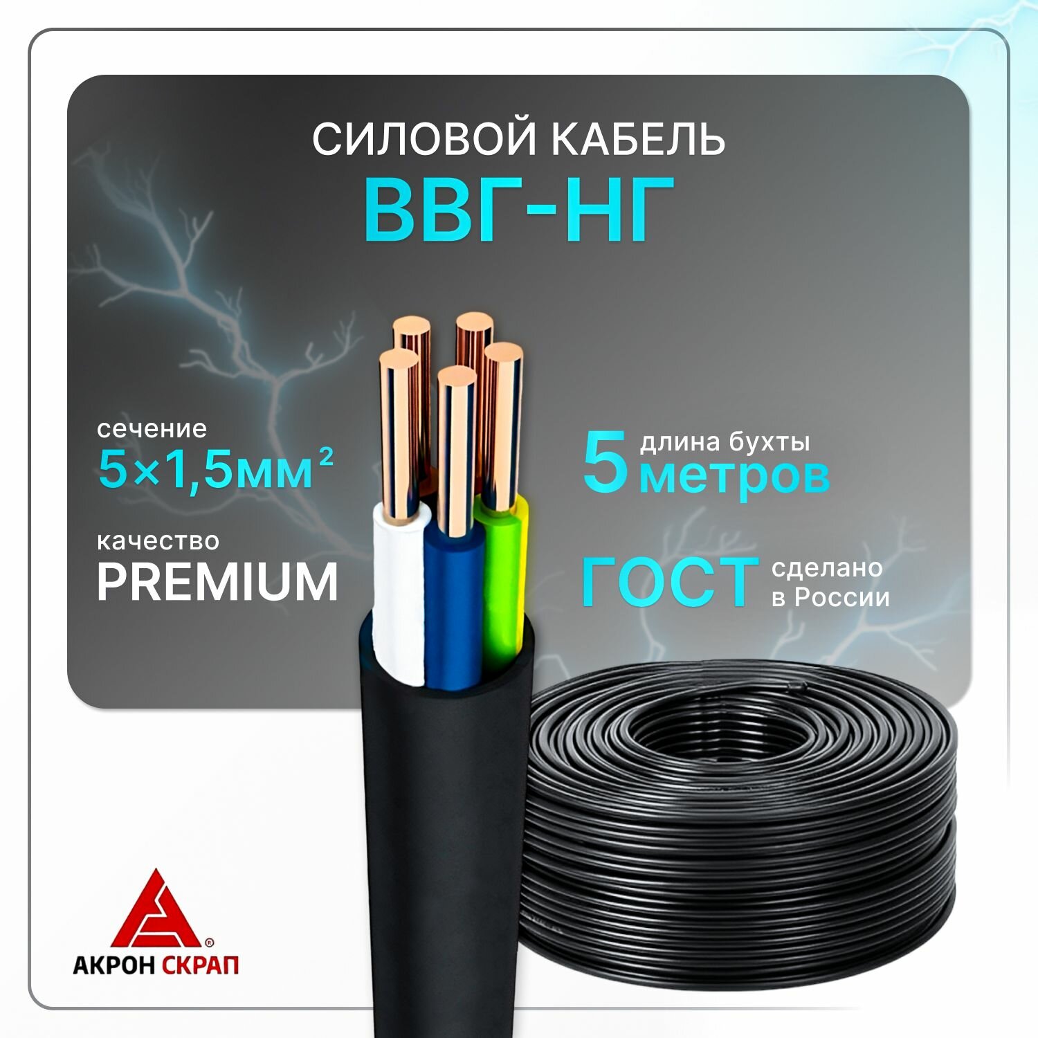 Купить Силовой кабель рэмкабель ВВГнг(A)-LS 5x1.5 ГОСТ ок круглый 5 м