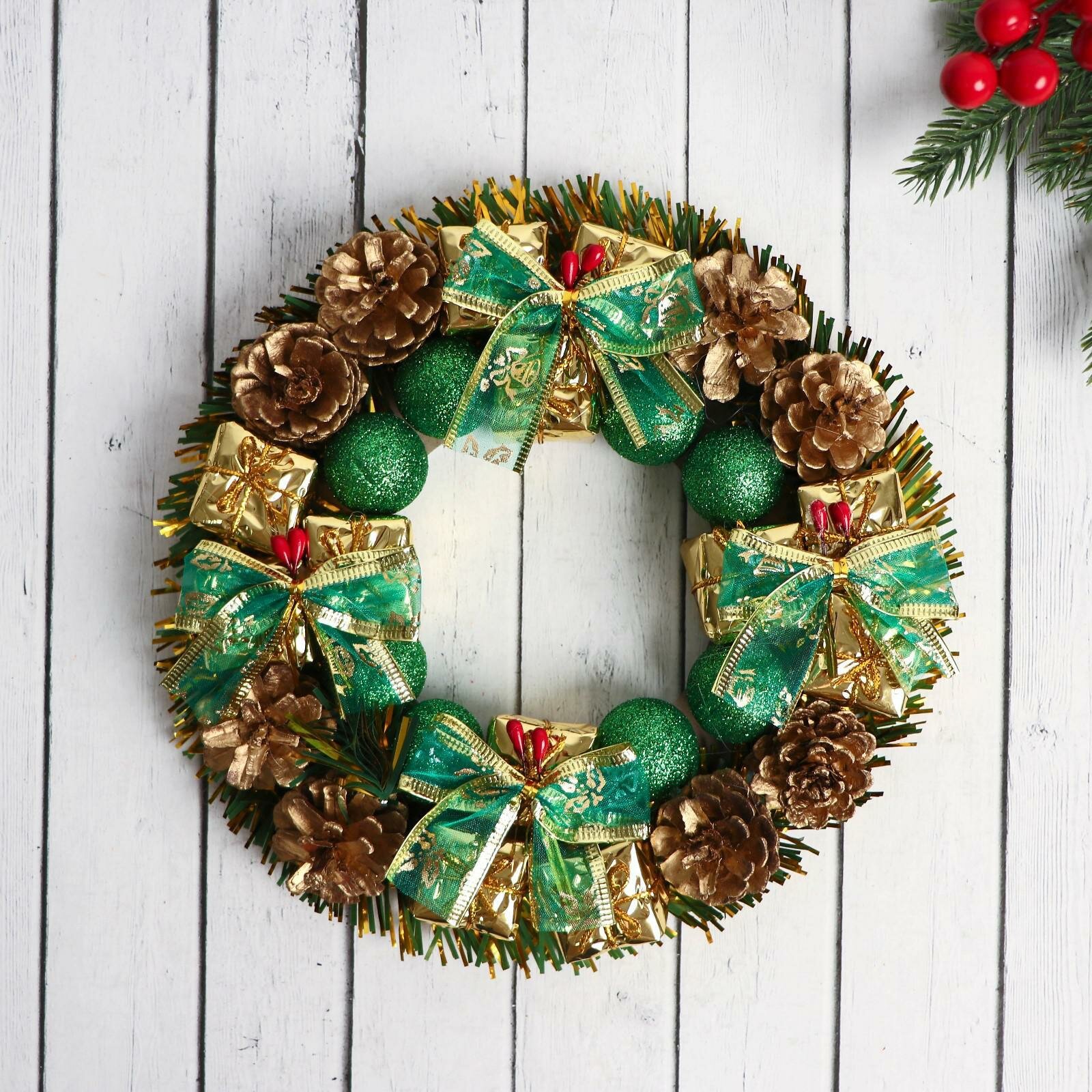 Купить Венок новогодний d-22 см "Зелёные бантики и шарики"
